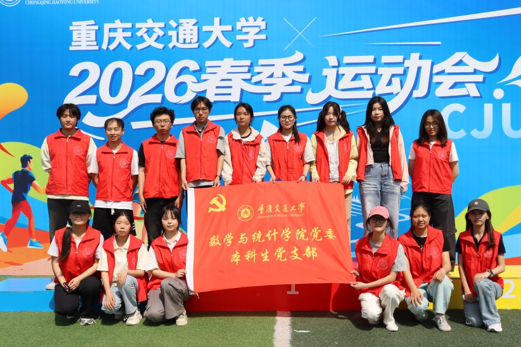 4月17日,重庆交通大学2026年春季运动会正式举行。为深入践行“奉献、友爱、互助、进步”的志愿服务精神,充分发挥优秀学生的先锋模范作用,数学与统计学院本科生党支部组织学院第131期高级党校学员开展志愿服务活动,以实际行动保障运动会顺利进行,以真诚服务诠释青春责任。