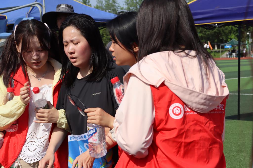 赛场上,运动员奋勇拼搏、挥洒汗水;赛场外,志愿者恪守职责、默默奉献。全体人员分工明确、协作有序,于赛道沿线往来协助,主动为参赛运动员递送饮水、保管物品、引导入场、维护现场秩序,以细致周到的服务帮助运动员缓解疲劳、鼓舞斗志。面对烈日与奔波,志愿者们始终保持着饱满的工作热情,以耐心与责任感扎实做好后勤保障工作,展现出数学与统计学院学生良好的精神风貌。