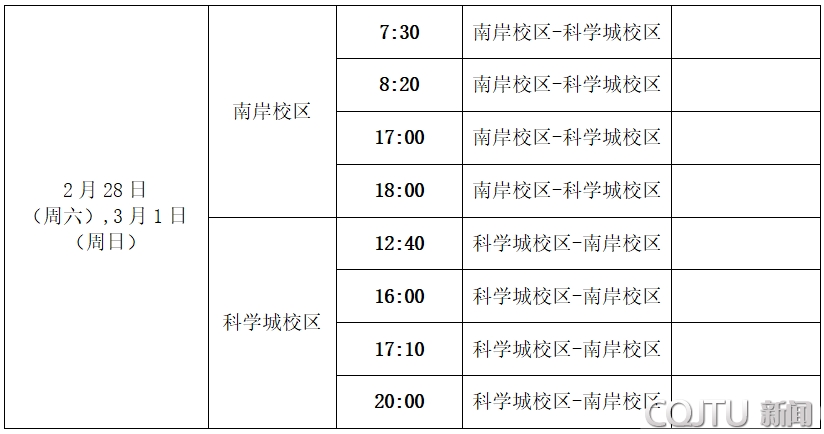 注:3月2日起交通车运行时刻表另行通知。