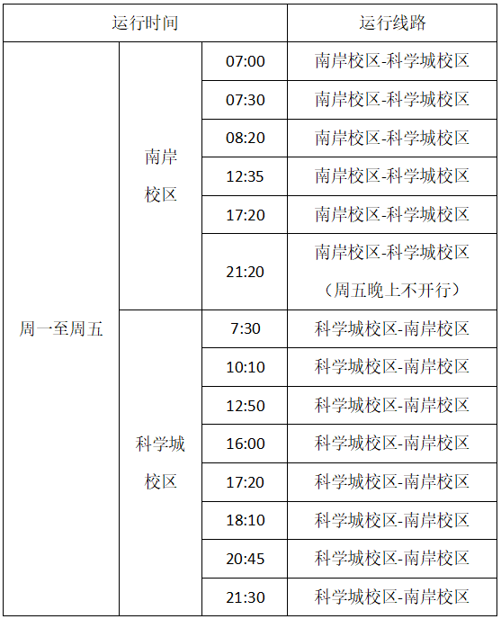 2.所有班次均停靠致远楼乘车点,该点发车提前10分钟。