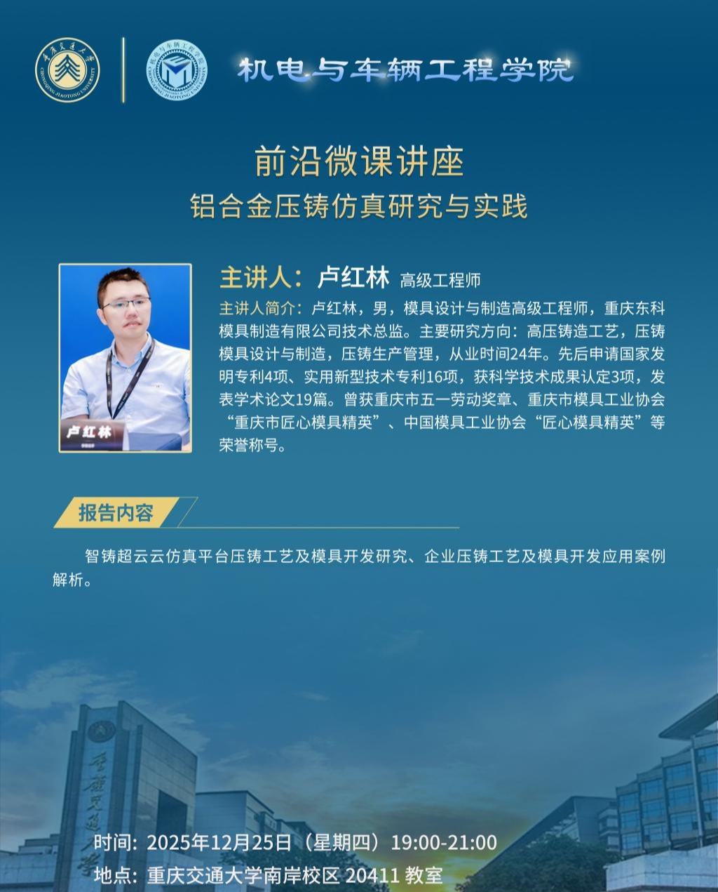机电与车辆工程学院前沿微课讲座:智铸超云仿真分析在压铸模具及工艺开...