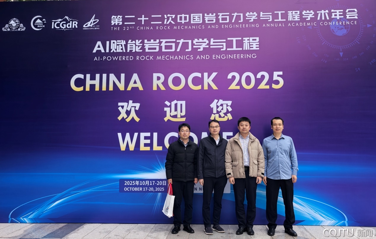 2025年10月17至20日,由中国岩石力学与工程学会和国际地质灾害与减灾协会主办的第二十二次中国岩石力学与工程学术年会在河北雄安新区隆重召开。此次论坛围绕“AI赋能岩石力学与工程”为主题开展学术交流,旨在加强我国岩石力学与工程领域的学术交流,促进国内外岩石力学与工程领域科技创新。会议覆盖了335家高校和企业,13.12万科技工作者参会交流,共安排744场专题报告。著名科学家宋振骐、周丰峻、顾金才、多吉、陈祖煜、郭正堂、周成虎、杨树锋、陈云敏、康红普、陈湘生、郭万林、赵阳升、吴宜灿、冯夏庭、李术才、殷跃平、张宗亮、朱合华、杜修力、王明洋、陶智、杜时贵、周创兵、刘汉龙、潘一山、何川等,以及国际岩石力学与岩石工程学会副主席Ki-Bok Min,雄安新区党工委委员、管委会副主任赵丰东,交通运输部科技司邢超等应邀出席开幕式。重庆交通大学河海学院党委书记叶四桥教授,现代水利水运科技创新研究院副院长、岩土与地质工程系主任王林峰教授,副主任阿比尔的副教授,岩土与地质工程系教师宋晨鹏教授和李修磊副教授参加了本次学术年会。