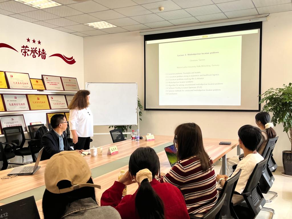 2025年10月22日至24日,国际知名优化领域专家、德国哈雷-维滕贝格马丁-路德大学Christiane Tammer教授应邀访问我校,在科学城校区致远楼404会议室开展了为期三天的短期课程“多目标逼近问题及其应用”。本次短期课程由数学与统计学院院长王其林教授主持,学院优化研究团队师生积极参与。