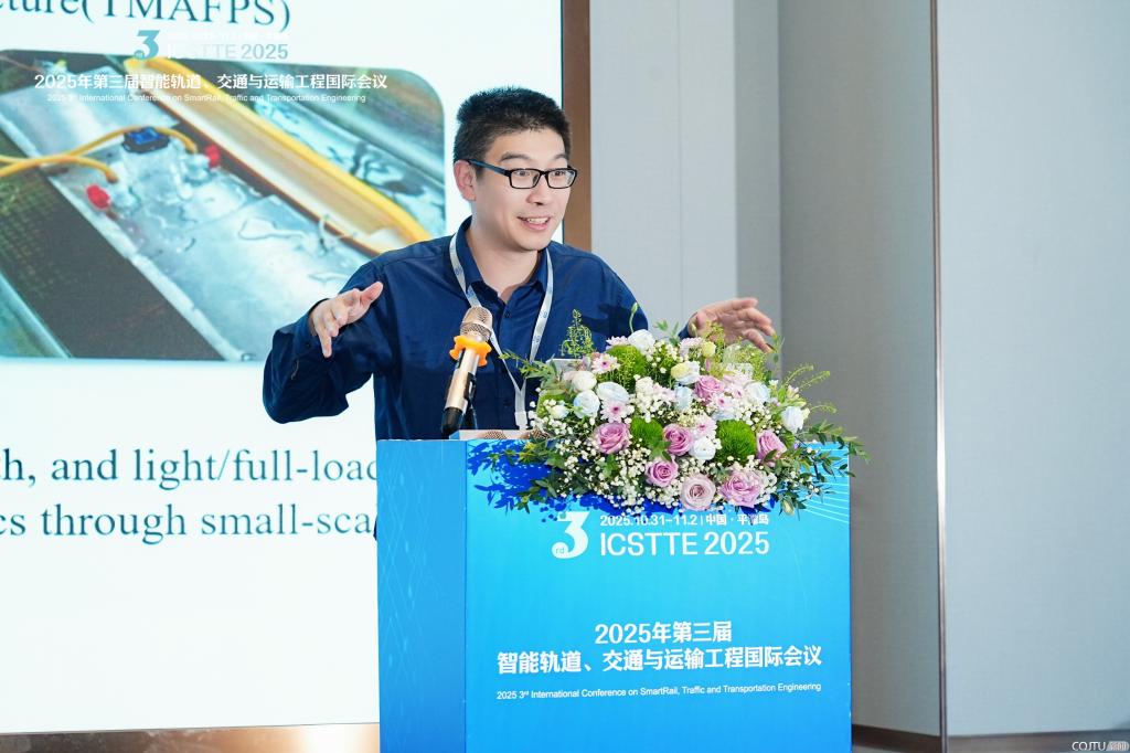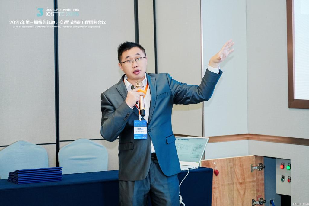 机电与车辆工程学院牵头组织“轨道交通车辆-轨道-桥梁系统结构设计、动力学、强度与控制关键技术”分会场,蒋咏志副教授作“Dynamic response and stability assessment of suspended monorail in cross wind curve condition” 特邀报告,深入解析跨风曲线工况下悬挂式单轨的动态响应与稳定性,为轨道交通安全运营提供关键技术参考,引发与会专家的热烈讨论。交通运输学院综合运输系统智能优化研究所副所长刘松博士后受邀在"新一代信息技术驱动的多式联运创新范式"分会场作“Optimization of Reliable Routes for Multimodal Transport of Emergency Supplies Under Dual Uncertainty”特邀报告,针对双重不确定性下应急物资多式联运可靠路径优化问题提出创新解决方案,为多式联运领域技术突破提供新思路。两位青年学者的报告体现了我校以“交通+”为核心的学科交叉特色。