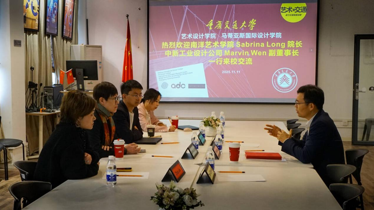 2025年11月11日,新加坡南洋艺术学院艺术与设计学院院长Sabrina Long、中新工业设计公司Marvin Wen副董事长一行到访艺术设计学院,与李伟湛院长、骨干教师举行了富有成效的合作会谈。