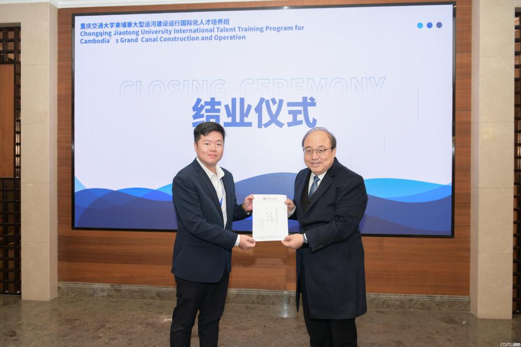 结业证书的颁发为本次培训画上了圆满的句号,但我校与柬埔寨在交通基础设施领域共绘发展蓝图的新篇章才刚刚开启。以此次培训为新的起点,重庆交通大学将继续秉持“明德行远、交通天下”的校训,与柬埔寨同仁一道,携手为德崇富南运河的顺利实施、为柬埔寨区域物流枢纽愿景的实现、为中柬命运共同体的建设注入更多智慧与力量,让合作之花结出友谊之果。