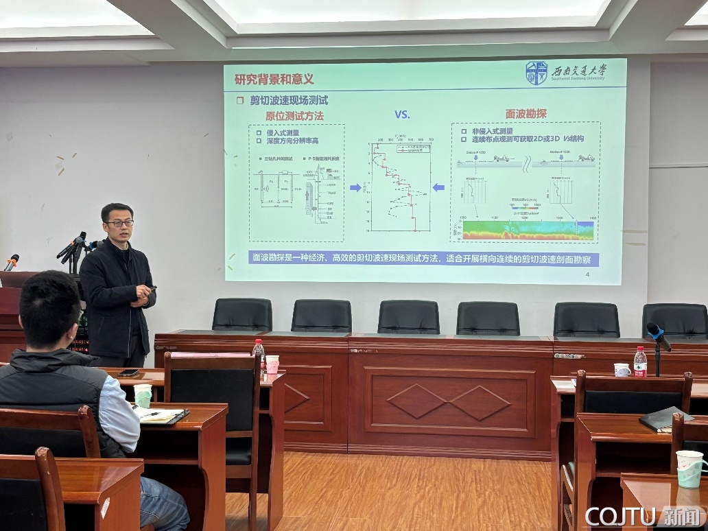 2 月 29 日下午,西南交通大学曹子君教授应邀来我校作了题为“基于面波勘探的剪切波速概率反演与滑坡潜在滑动面识别方法研究”的学术报告。报告会由河海学院副院长李鹏飞主持,学院相关领域教师及研究生近百人参会,共同聚焦岩土工程前沿技术交流探讨。