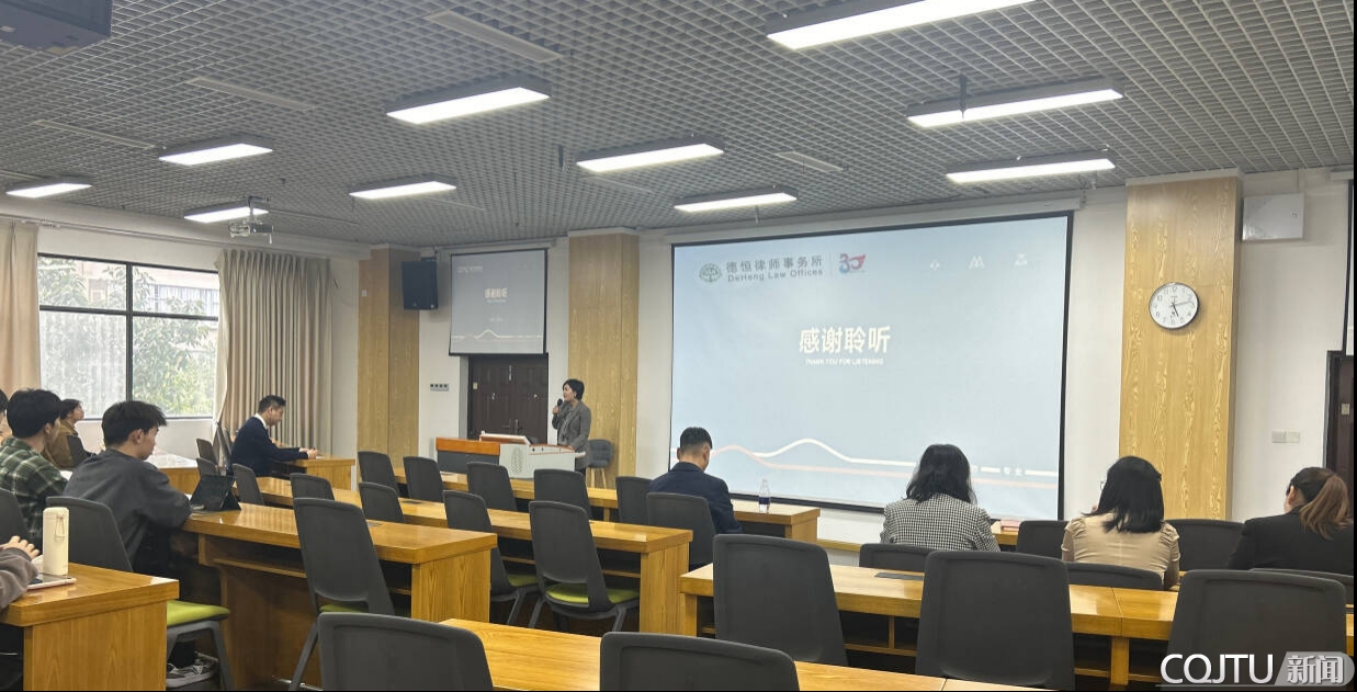 在3教401教室,开展了支部共建主题活动,重庆仲裁办研究咨询处处长黄河、北京德恒(重庆)律师事务所党委委员路梅围绕学生专业发展和择业就业创业等进行了专题分享。知识产权系教师和大三、大四部分同学参与了主题活动。
