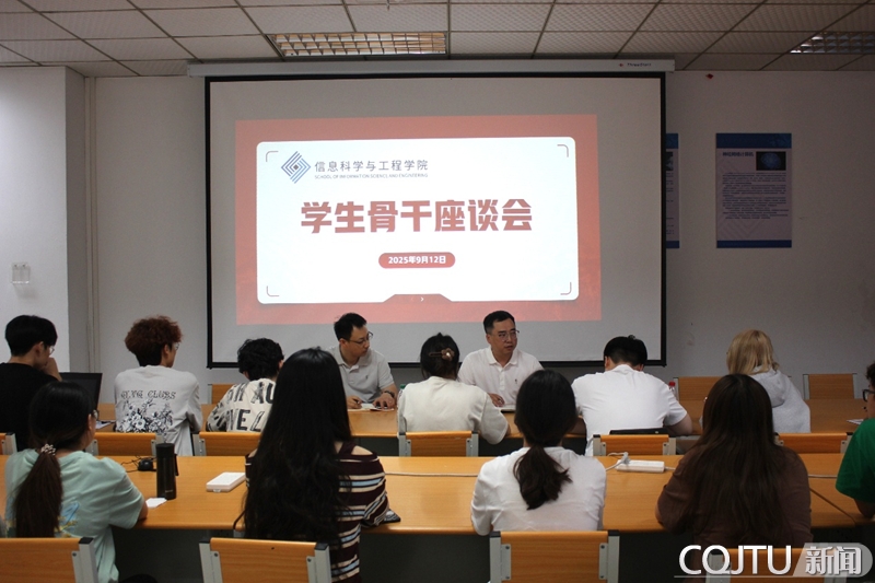 为进一步优化学生干部管理机制,加强学生骨干培养等实际情况,凝心聚力谋发展,务实笃行启新篇,2025年9月12日,重庆交通大学信息科学与工程学院在南岸校区语音楼召开学生骨干座谈会。学院党委副书记蒋攀、分团委副书记李雪晶出席本次座谈会。