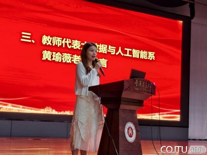 随后,教师代表、大数据与人工智能系黄瑜薇老师分享学习心得,建议新生打好基础、主动探索、善用资源、劳逸结合,鼓励大家保持好奇心与学习热情,勇敢面对挑战,树立责任感与使命感。