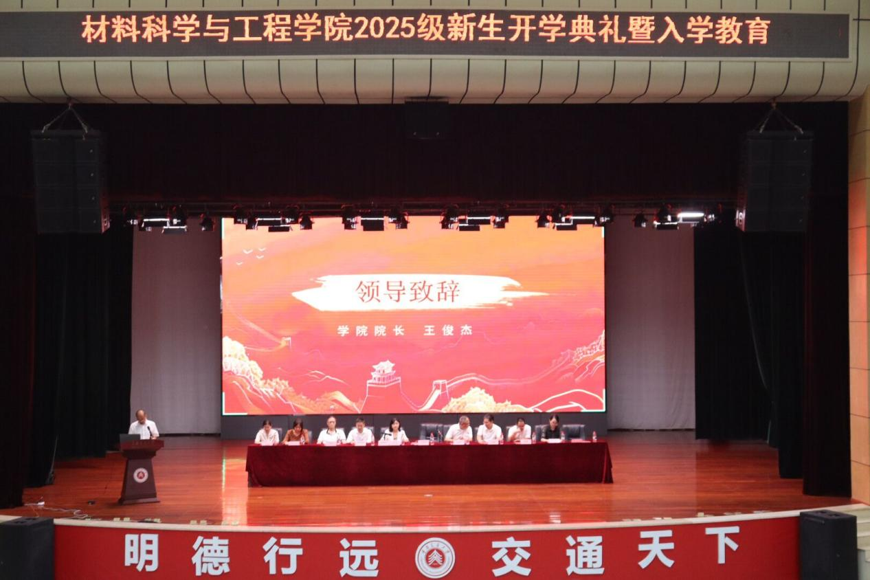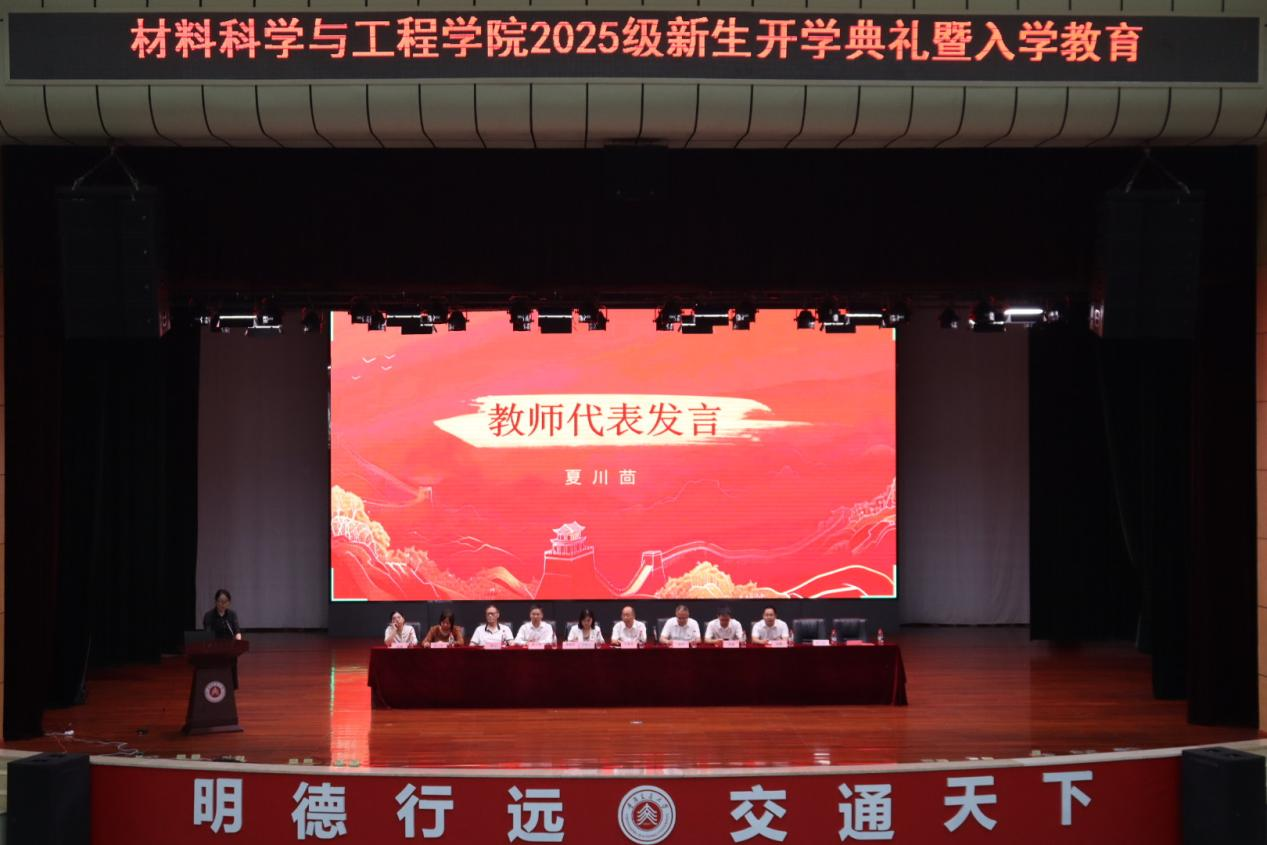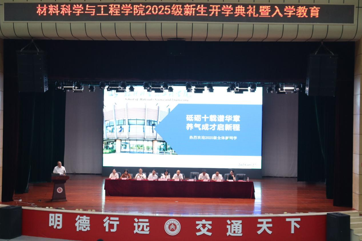 2025年9月27日上午9时,重庆交通大学材料科学与工程学院2025级新生开学典礼在科学城校区学生活动中心二楼报告厅隆重举行。学院领导班子、各系主任、教学办公室主任、学科与研究生办公室主任、新生辅导员、教师代表以及2025级全体新生共同参加了典礼。典礼由学院党委副书记黄丽君主持。
