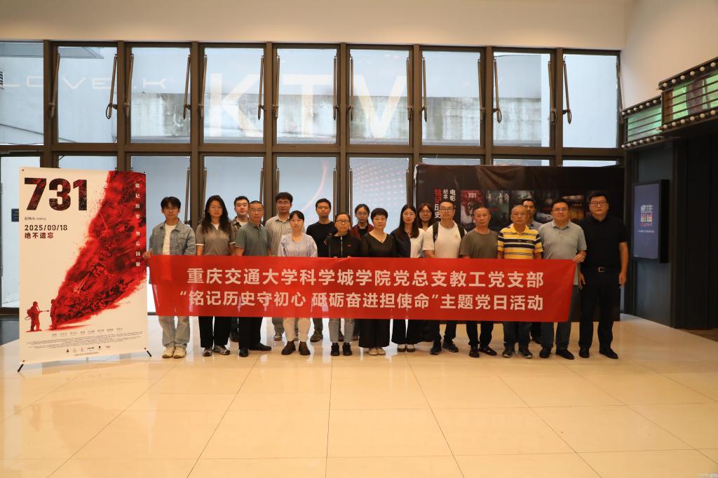 2025年是中国人民抗日战争暨世界反法西斯战争胜利80周年,为深切缅怀革命先烈、铭记民族苦难历史,进一步强化党员的历史责任感与时代使命感,9月26日上午,科学城学院党总支教工党支部组织党员同志前往双福吾悦广场,开展“铭记历史守初心 砥砺奋进担使命”主题党日活动,集体观看爱国主义历史题材电影《731》。