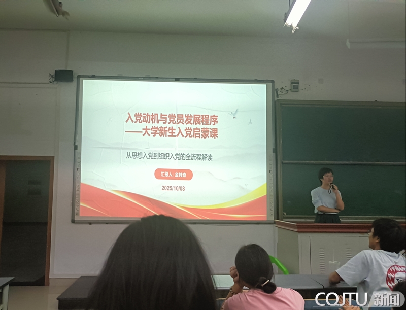 2025年10月8日,在科学城校区A01337、A01338教室,信息学院2025级辅导员陶龙、金其奇面向全体新生,围绕“端正入党动机、规范入党程序”主题展开专题教育,为新生扣好政治生涯“第一粒扣子”。