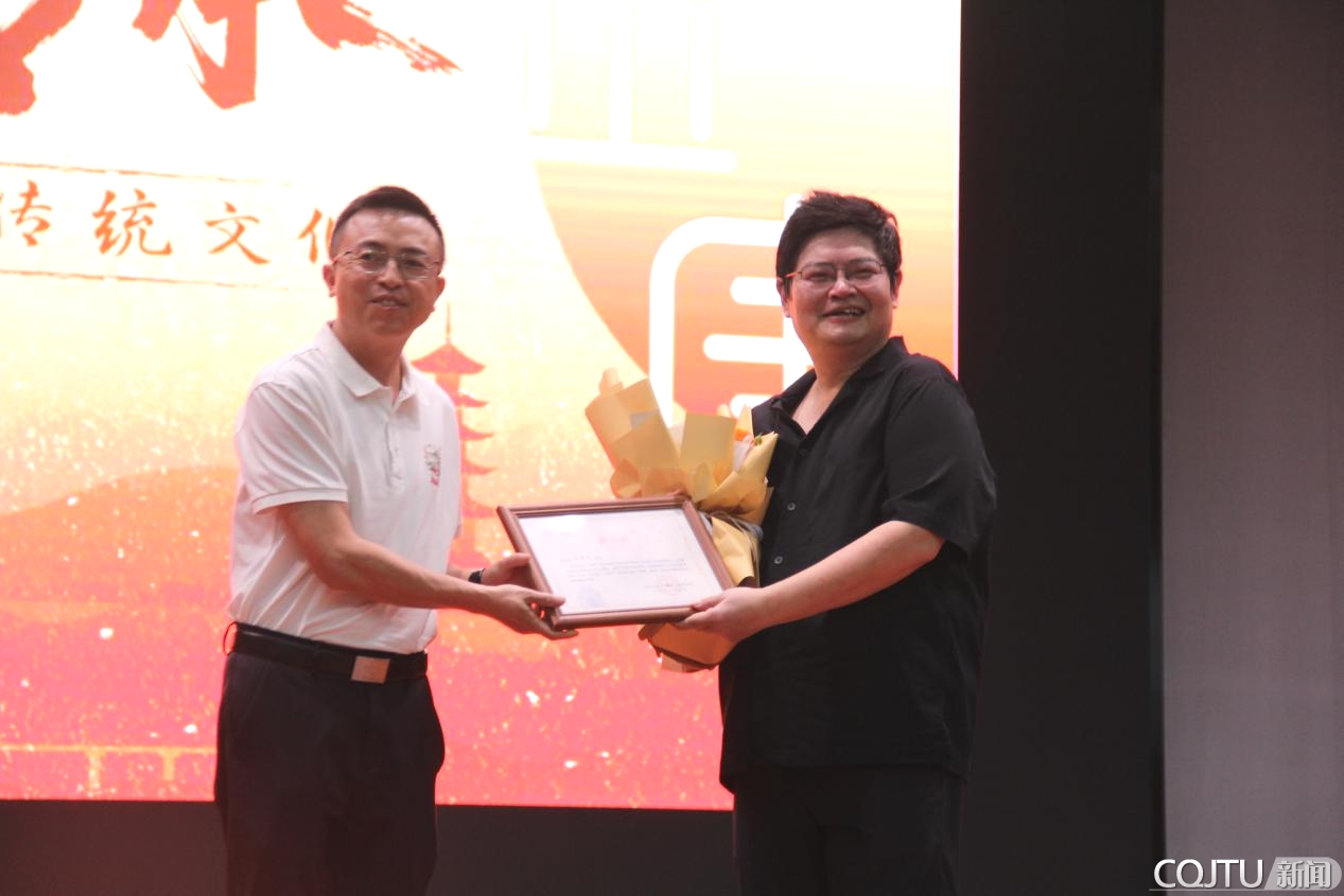重庆交通大学党委常委、宣传部部长叶勇为乔亚洲老师颁发“红路”院坝课堂导师聘书。学校供图 第1眼TV-华龙网发