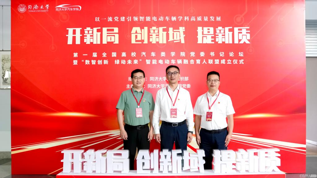 10月12日,由同济大学发起的首届全国高校汽车类学院党委书记论坛在同济大学嘉定校区成功举办。本次论坛以“开新局,创新域,提新质——以一流党建引领智能电动车辆学科高质量发展”为主题,来自清华大学、吉林大学、同济大学、重庆大学、武汉理工大学、长安大学、重庆交通大学等全国30余所高校汽车类学院的党委书记、专家学者、党支部书记等百余人齐聚一堂,同话党建创新,共促学科发展。机电与车辆工程学院党委书记刘建新、副书记林兴冬、党委委员束海波参加论坛,并作专题交流报告。