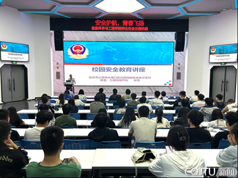 为切实增强学生安全意识,营造安全稳定的校园环境,信息科学与工程学院于2025年10月17日下午在南岸校区第一教学楼大数据中心隆重举行“安全护航,青春飞扬”学生安全讲座。讲座由学院党委副书记蒋攀老师主持,并荣幸邀请到重庆市公安局大渡口区分局校园安全保卫支队政委张伟警官担任主讲。