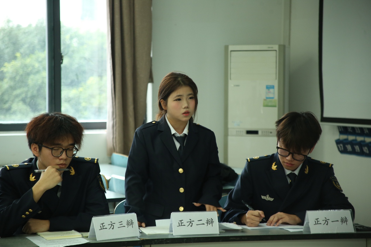 决赛现场氛围紧张热烈,正反双方辩手围绕辩题展开激烈交锋。正方辩手立足“守住第一次”的底线思维,阐述“初始防线”对青年清廉修身的基础性作用,强调杜绝“破窗效应”是筑牢廉洁根基的关键;反方辩手则聚焦“慎独常态化”的长效价值,论证持续自我约束才是清廉素养内化的核心路径。双方引经据典、逻辑缜密,从个人成长经历到行业廉洁案例,层层深入剖析,展现出扎实的思辨能力与鲜明的专业特色。