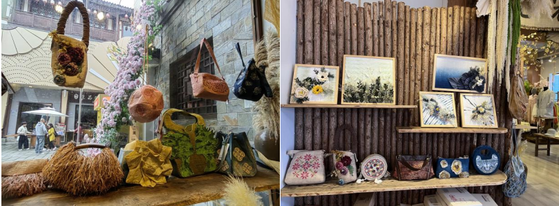 再次走进壹秋堂夏布坊,同学们进一步了解了夏布产品的多样化应用。工作人员系统讲解了不同质感布料的使用场景,并指导学生亲身体验绩纱、挽芋子、穿扣、织布等核心工艺环节。通过持续的动手实践,学生们对传统织造技艺有了更深的领悟。值得一提的是,前期课程中学生设计的夏布文创产品已在壹秋堂实体店正式售卖,市场反响热烈,部分作品更出现供不应求的情况,充分证明了传统工艺与现代设计融合的商业价值与市场潜力。