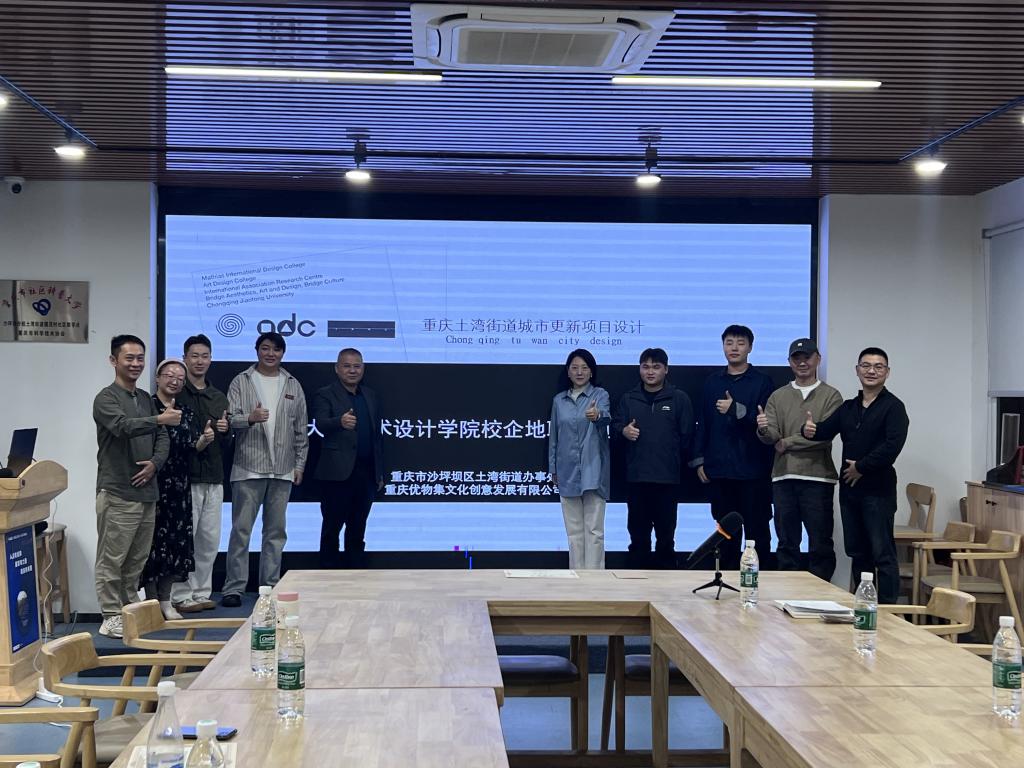 近日,艺术设计学院《交通环境景观设计》课程场景项目式教学成果汇报暨校政企联合项目评选颁奖仪式在重庆沙坪坝土湾街道举办。重庆沙坪坝土湾街道吴宁主任、重庆优物集文化创意发展有限公司负责人游吉彦、金澈和陈宁、重庆交通大学环境设计系吴彪教授、邓鹃副主任、获奖学生等出席了本次颁奖活动。