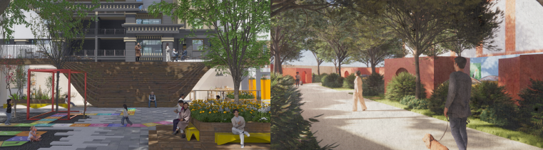 此次艺术设计学院环境设计系《交通环境景观设计》项目式教学以重庆沙坪坝土湾街道纺织工业文化为背景,呈现精彩的历史与时代的碰撞。本次课程成果由校政企三方参与评选,一共产生 5 件获奖作品,分别是一等奖作品《再闻机杼声》、二等奖作品《织迹·染巷》和《时光褶皱》、三等奖作品《时光戏岁》和《空间重叠计划》。获奖作品充分展现了同学们对场地现状的思考和对“纺织记忆链和工业文化”的深入挖掘与创新演绎。