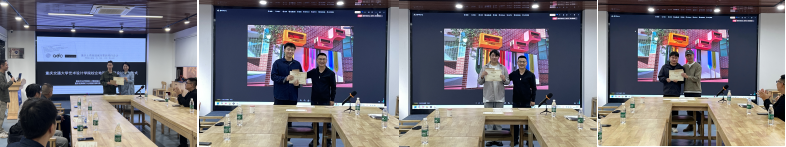 在活动现场,同学们首先对自己的作品进行了汇报展示,现场嘉宾对同学们的作品给予了充分的肯定。重庆沙坪坝土湾街道吴宁主任和重庆优物集文化创意发展有限公司总裁游吉彦分别对同学们的作品进行了点评,与同学们进行了深入的交流。随后,重庆沙坪坝土湾街道吴宁主任和重庆优物集文化创意发展有限公司负责人为获奖学生颁发了奖状和奖金,鼓励大家在未来的学习中再接再厉,创作出更多好的设计作品。