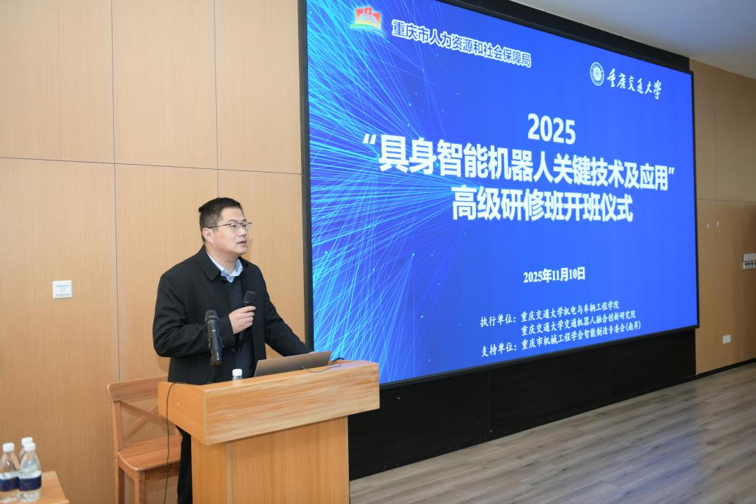 2025年11月10至14日,重庆市人社局2025年“具身智能机器人关键技术及应用”高级研修班在我校成功举行。具身智能机器人作为第三代智能载体正迅猛发展,重庆作为国家先进制造业中心,依托“33618”现代制造集群体系,正加速推进智能制造转型升级。重庆交通大学积极响应国家号召,立足区域产业升级需求,整合具身智能、智能制造等领域的专家资源,成功举办了本次高级研修班。该研修班由交通机器人融合创新研究院和机电与车辆工程学院联合执行,重庆市机械工程学会智能制造专委会(南岸)为支持单位。