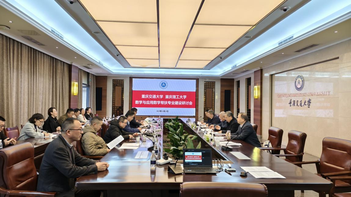为深入推进数学与应用数学国家一流专业建设,推动学院专业在人工智能背景下转型升级,2025年11月23日,数学与统计学院在明德楼国际会议厅成功举办了一流专业建设研讨会。参加会议的有教育部高等学校数学类专业教学指导委员会副主任黄云清、李若、吴泉水,教育部高等学校数学类专业教学指导委员会秘书长韩德仁,教育部大学数学课程教学指导委员会秘书长李继成,教育部高等学校数学类专业教学指导委员会委员刘三阳、孙笑涛、张伟年,重庆交通大学副校长郑丹、教务处处长何小兵,数学与统计学院党委书记刘君、院长王其林、副院长谭远顺、各系主任和骨干教师。
