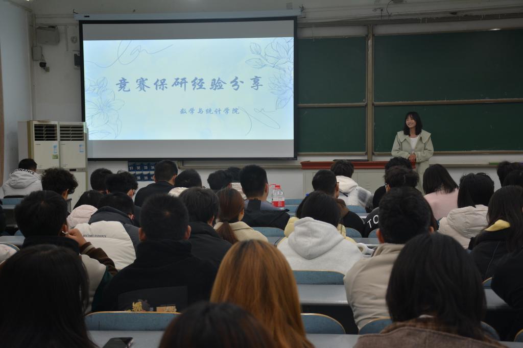 为帮助学生明确保研路径,解答升学困惑,11月21日,数学与统计学院在A01123教室成功举办“竞赛保研经验分享”活动。数学与应用数学2202班吴洁同学任分享嘉宾,与在场同学进行交流。