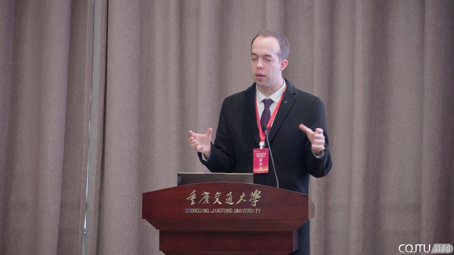 重庆交通大学党委常委、副校长杨胜发在致辞中,回溯学校建校74年来扎根交通、熔铸“两路”精神的发展历程,指出学校正围绕“路水空轨”大交通特色学科体系推进转型升级。他强调,交通强国建设既需“硬联通”的工程技术,更离不开“软联通”的语言服务与国际传播能力。他希望论坛围绕产教融合和人才培养,在理念上达成“生态共识”,在机制上破解“融合难题”,在实践上结出“共赢硕果”。