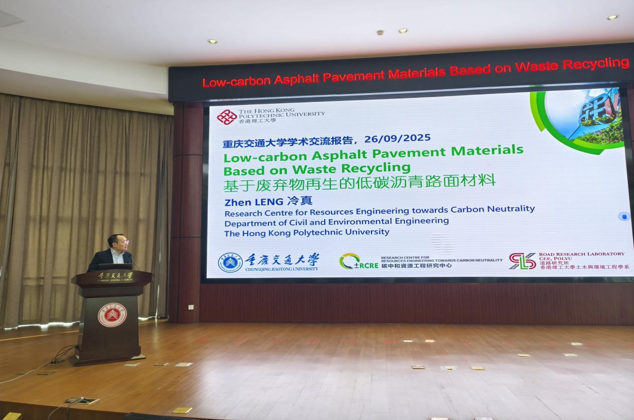为深化人才强校战略,助力交通领域绿色技术创新,2025年11月24日下午香港理工大学土木与环境工程学系冷真受聘我校特聘教授暨学术报告会在科学城校区致远报告厅举行。材料科学与工程学院党委书记周平,院长王俊杰,副院长郭鹏,副院长赵毅。聘任仪式暨报告会由材料学院副院长郭鹏主持。
