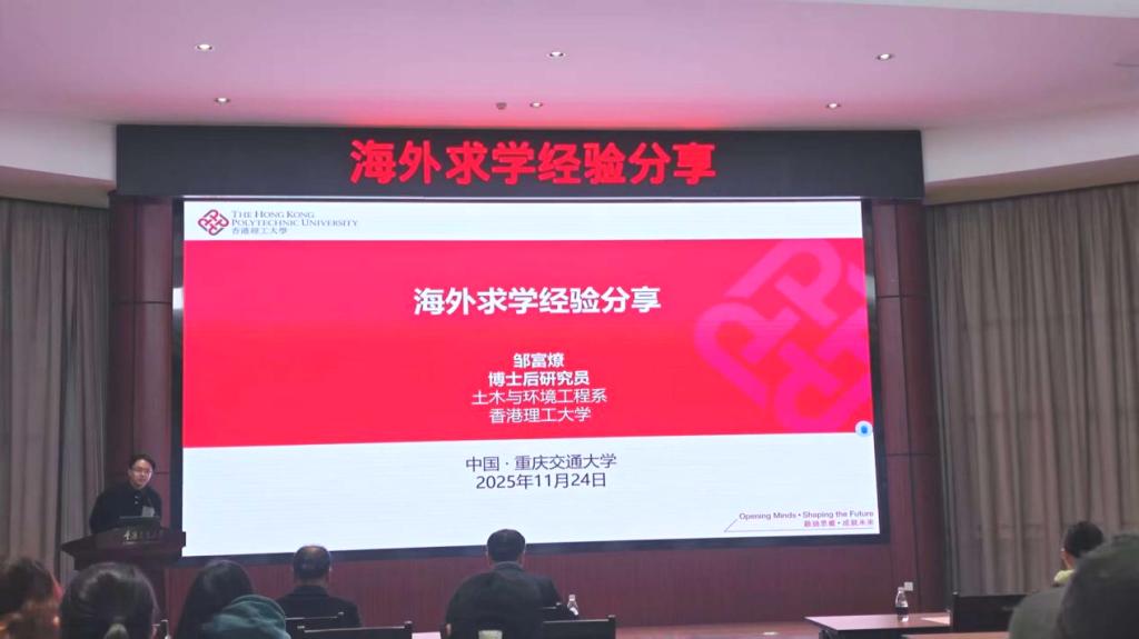 随后,香港理工大学博士后研究员邹富燎带来海外求学经验分享,结合自身研究方向,向师生介绍了境外求学资料准备、专业选择、简历制作等,为赴境外深造的同学提供了参考。