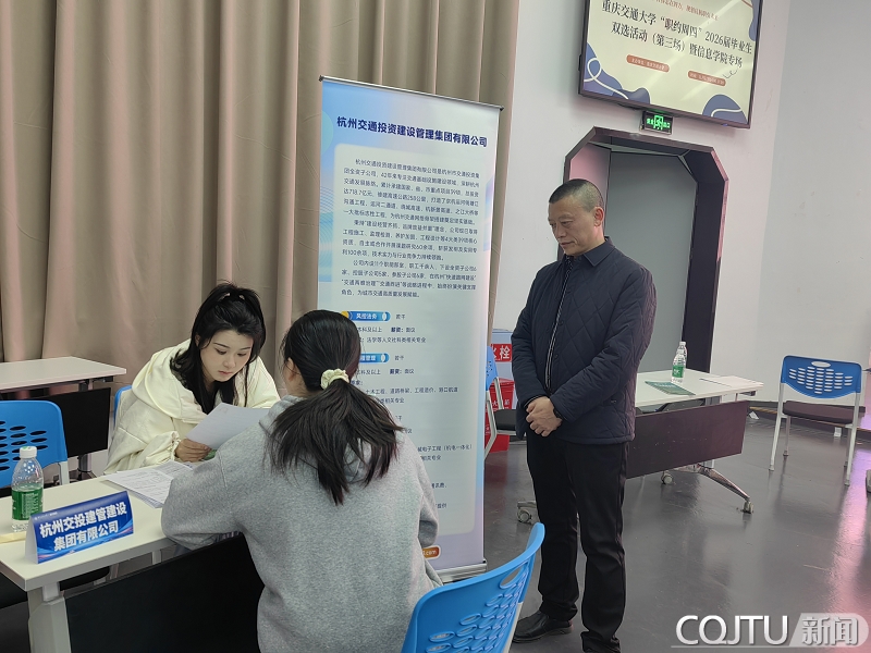 2025年11月27日,重庆交通大学信息科学与工程学院在南岸校区第一教学楼大数据中心举办信息学院26届毕业生专场招聘会,活动汇聚跨行业优质企业,为毕业生搭建高效多元的就业平台。信息科学与工程学院党委书记王辉老师,院长杨建喜老师,正处级组织员、纪委书记郑廷友老师,党委副书记蒋攀老师,学工办漆振羽老师及辅导员彭娅、王延鹏、胡小容老师参与此次活动,主动积极与企业沟通交流并帮助推荐学生面试。