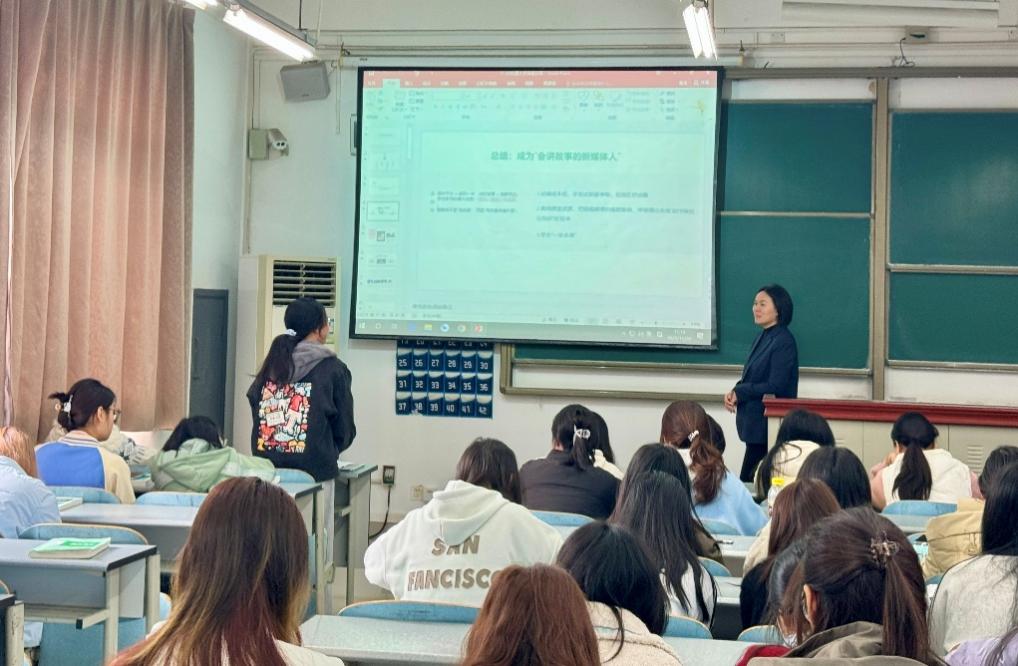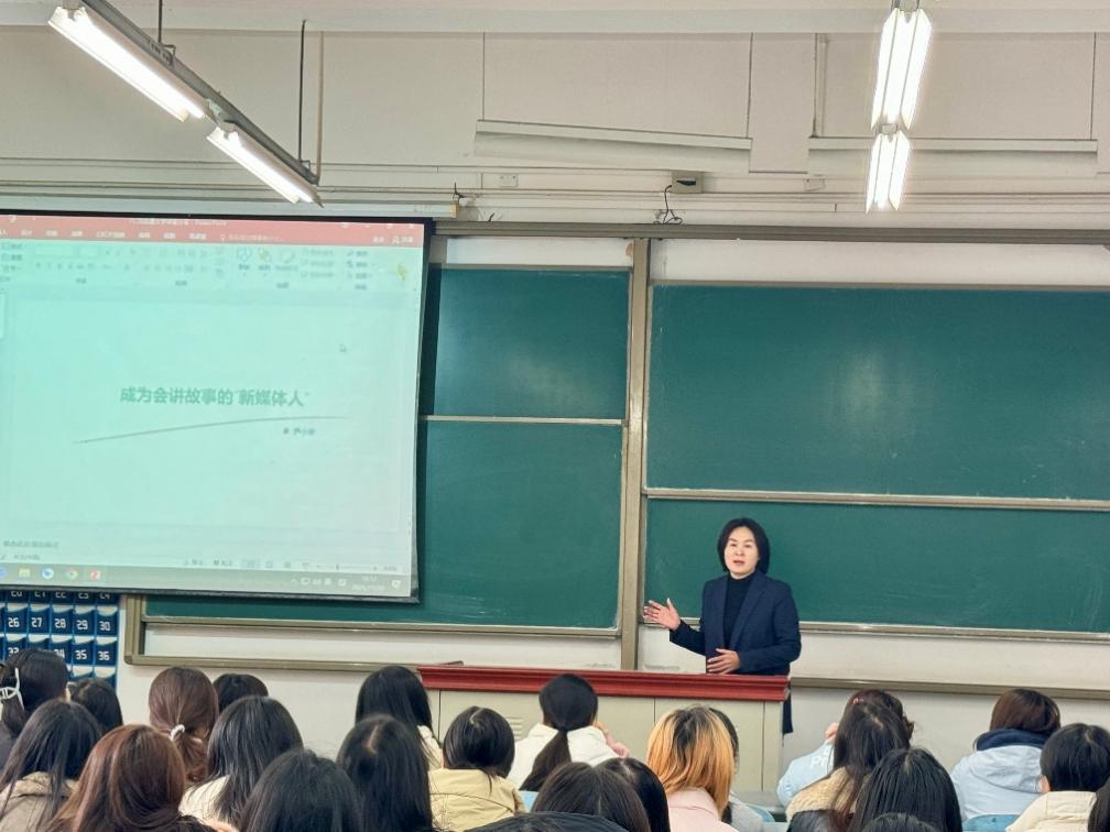 如何在新媒体时代讲好“新传故事”?2025年11月20日,重庆交通大学旅游与传媒学院特邀新华网重庆频道新媒体运营总审核尹小安走进课堂,在重庆交通大学科学城校区A01306教室为2025级新闻传播学大类专业学生带来《成为会讲故事的新媒体人》的专题讲座。本次讲座针对媒体行业转型、短视频创作方法、学生自媒体实践三部分进行讲解,为新传学子搭建起理论与实践的衔接桥梁。
