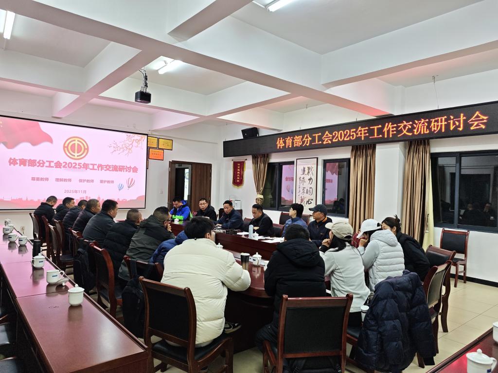 2025年11月28日下午,重庆交通大学科学城校区体育部会议室气氛热烈,体育部分工会2025年工会工作交流研讨会在此顺利召开。体育部党总支书记、主任隆承宏,正处级组织员王祥林,以及体育部20位教职工代表齐聚一堂,共同回顾2025年体育分工会工作成效,共商未来发展蓝图。