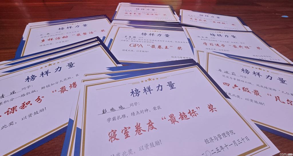立足新起点,让我们以榜样为镜,见贤思齐,深刻领会学校“五育并举”的育人理念,在深耕专业中巩固“智育”根基,在锤炼身心中彰显“体育”精神,在审美涵养与劳动实践中升华“美育”与“劳育”境界,更在知行合一中坚定“德育”本色。全体经管人当挺膺担当,以青春之我、奋斗之我,为学院发展、学校建设与社会进步贡献智慧与力量,奋力书写无愧于新时代的青春华章!