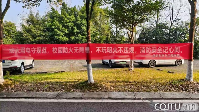 为筑牢冬日校园安全防线,强化师生消防安全意识,近日,重庆交通大学信息科学与工程学院在德园宿舍区开展消防安全宣传活动,以“易拉宝展示+横幅宣传”的组合形式传递实用消防知识。