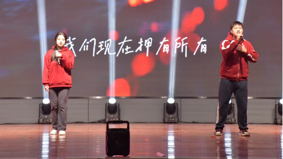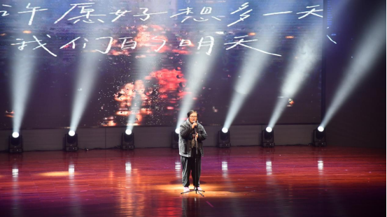 蒋照华老师登台献唱《年少有为》,以温暖的声线演绎这首寓意深刻的歌曲。歌声中饱含的鼓励与信任,不仅是对青春奋斗者的深情礼赞,更如师长一双托举未来的手,深刻呼应了“共赋新元”的晚会主题,引发了全场共鸣。