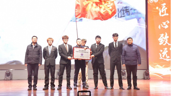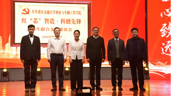 晚会的首个高潮,是两个崭新使命坐标的诞生。在全场瞩目中,“红‘芯’智造·科创先锋”师生联合党支部与重庆交通大学行远FSAE大学生方程式车队正式授牌成立。这不仅是仪式,更是学院推动党建与科研深度融合、打造实践育人新高地的关键落子。两面崭新的旗帜被高高擎起,象征着机电人服务“制造强国”战略的坚定决心,为整场晚会奠定了激昂的基调。