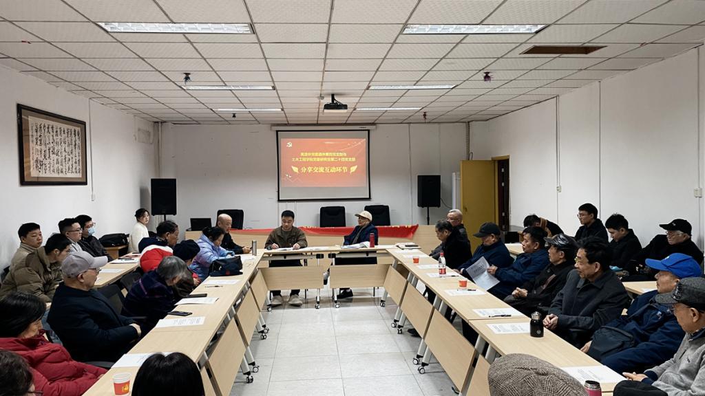 理论学习后,活动进入轻松而深入的银青对话环节。土木工程学院党委副书记杜嘉以支部成员身份,从党建与事业发展相融合的角度,阐释了“青老结对”作为双向赋能、彼此成就的“乘数效应”。研究生党员代表侯杰博士结合科研实践,分享了将个人奋斗融入国家战略需求的思考,表达了对老党员坚定信念与严谨作风的学习决心。退休第四党支部书记邓家钦结合数十年工作与党性修养积淀,深情寄语青年党员,强调了纪律、奉献与持续学习的重要性。三位代表的发言与现场两代党员的真诚互动交相辉映,思想的碰撞、情感的共鸣,既生动诠释了“传帮带”的时代内涵,更让经验传递与精神传承在双向奔赴中同频共振,让红色基因在代际交融中生生不息。