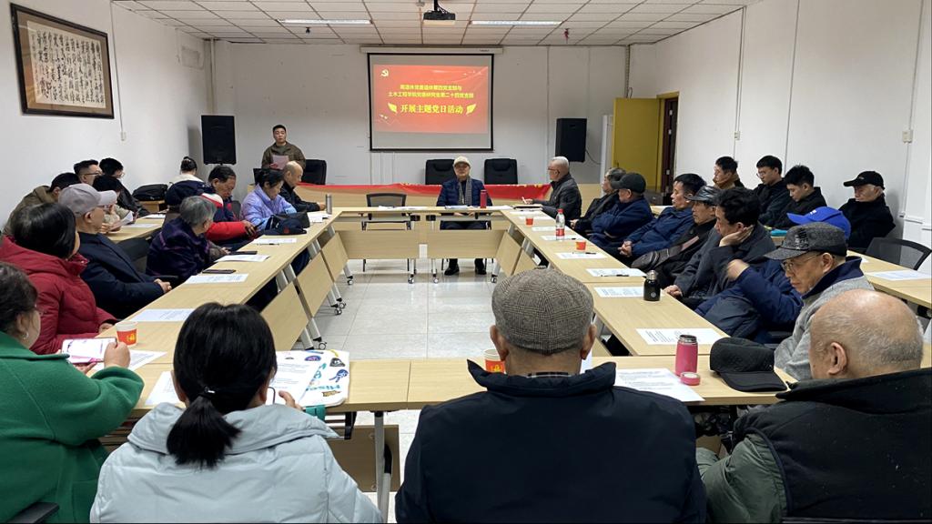 签约仪式后,活动进入联合主题党日学习环节。全体党员聚焦“第一议题”,深入学习领会党的二十届四中全会精神。通过领学研读与互动交流,深化了对党中央决策部署的理解,凝聚了思想共识。学习紧扣高等教育与土木工程行业发展实际,引导党员深刻把握中国式现代化对科技人才的新要求。“青老同堂”的共学模式不仅提升了学习深度,更在思想碰撞中淬炼了党性,老党员深厚的理论功底与青年党员鲜活的理解视角相得益彰,为共建活动筑牢思想根基,确保方向不偏、聚力不散。