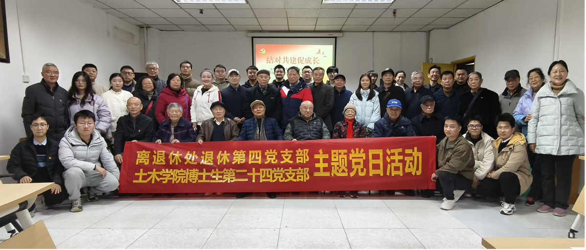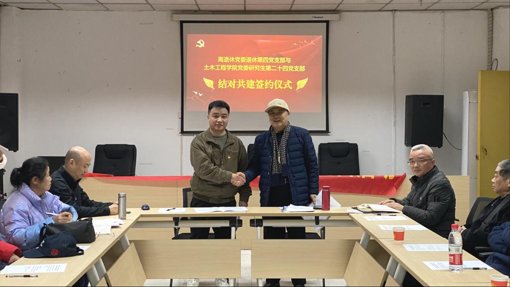 为探索新时代高校党建新模式,促进代际交流与精神传承,2025年12月11日,重庆交通大学土木工程学院党委研究生第二十四党支部与离退休党委退休第四党支部联合举行“结对共建促成长”主题党日活动暨共建签约仪式。活动聚焦组织共建、思想共学以及经验共享,旨在促进“银发”智慧与“青春”力量深度融合,为基层党组织建设注入新活力,为党员成长搭建新平台。土木工程学院党委副书记杜嘉、离退休党委副书记柳军剑及双方近50名党员代表共同参与。