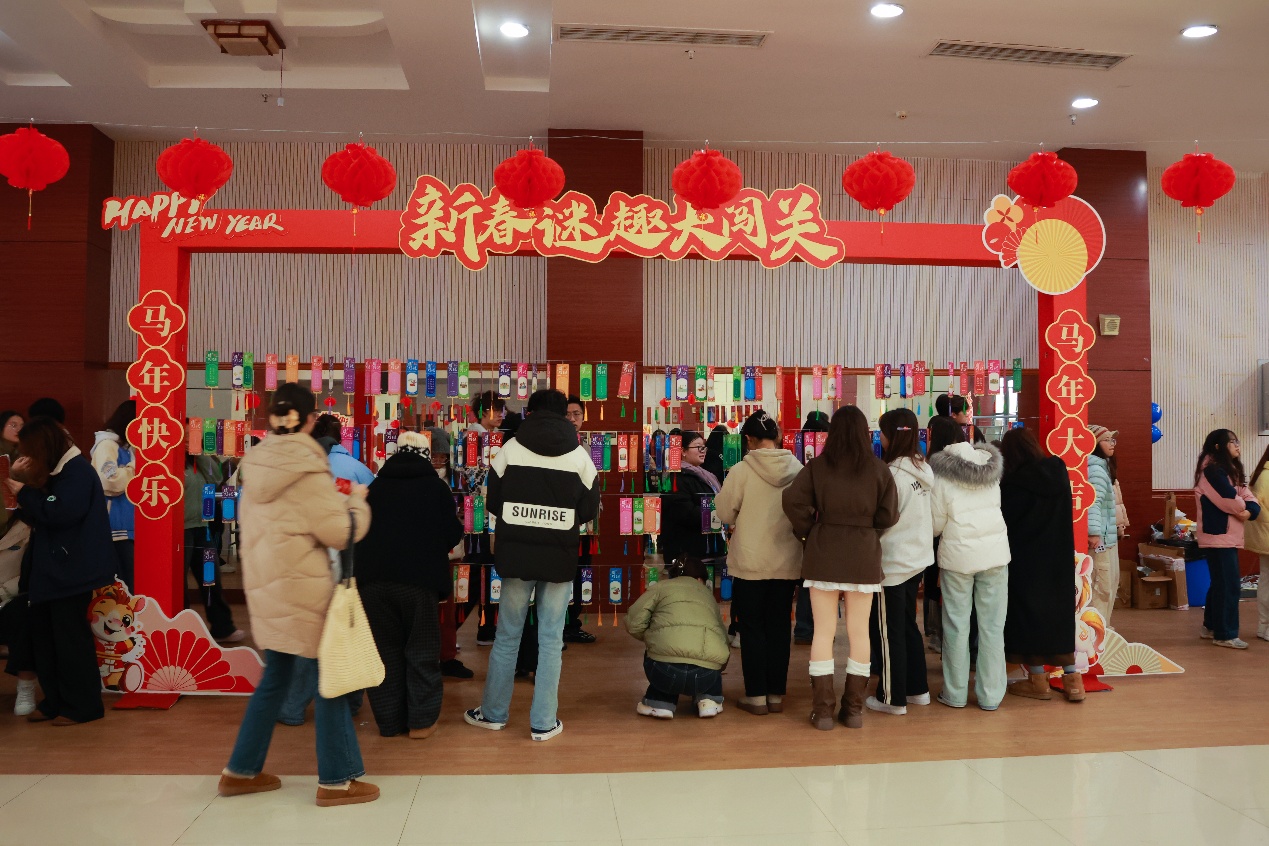 八大特色游园项目各具巧思,既富趣味又暗藏深意。“新春谜趣大闯关” 环节,100 道融合党的二十届四中全会精神与中华优秀传统文化的谜面,让学子们在绞尽脑汁解谜的过程中,潜移默化地深化文化认同,增强对时代发展的责任感与使命感;“扔沙包 —— 沙包送福气” 承载着美好期许,同学们在投掷与躲闪间,将一年的不快与烦恼统统 “扔掉”,以轻松心态迎接新年好运;“投掷飞镖 —— 飞镖闯关” 别出心裁,将传统飞镖环数赋予 100 分至 60 分的学业寓意,鼓励大家精准发力,在新学年考出好成绩、投出好未来;“套圈 —— 好运圈出来” 前人头攒动,同学们手持套圈瞄准目标,期待将新春好运牢牢 “套住”;“弓箭射击 —— 箭揽全年福” 则让大家在拉弓瞄准的过程中,寄托对新年平安顺遂、万事如意的美好向往。