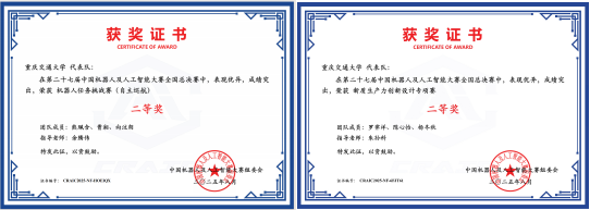 2025年8月,获中国机器人及人工智能大赛,国家级二等奖2项,国家级三等奖1项。
