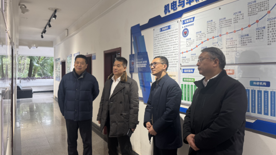 陈昱鹏一行首先参观了机电学院科研团队工作室,重点了解了各团队的主要科研成果和科技获奖情况。陈昱鹏表示,机电学院的科研工作理论与实践并重,交通特色突出,创新成果丰富,具有强劲的发展动能。