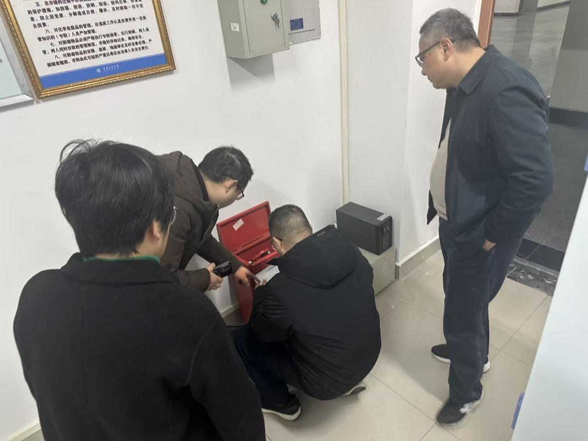 书记周平、院长王俊杰一行先后对材料学院化学实验室、物理实验室以及材料实验教学示范中心进行了全面细致的安全检查。在整个检查过程中,院领导认真听取各实验室负责人的汇报,详细了解设备运行、安全制度落实及日常管理情况,并针对潜在风险点提出明确指导意见。特别着重检查了危化品存放室,对该存放室前期发现问题的整改情况进行了逐一核查。经现场查验,该存放室在仓储条件、标识管理、台账记录及应急设施等方面均已符合相关规范要求。目前,按程序积极推进科学城校企易制爆备案单位申请。