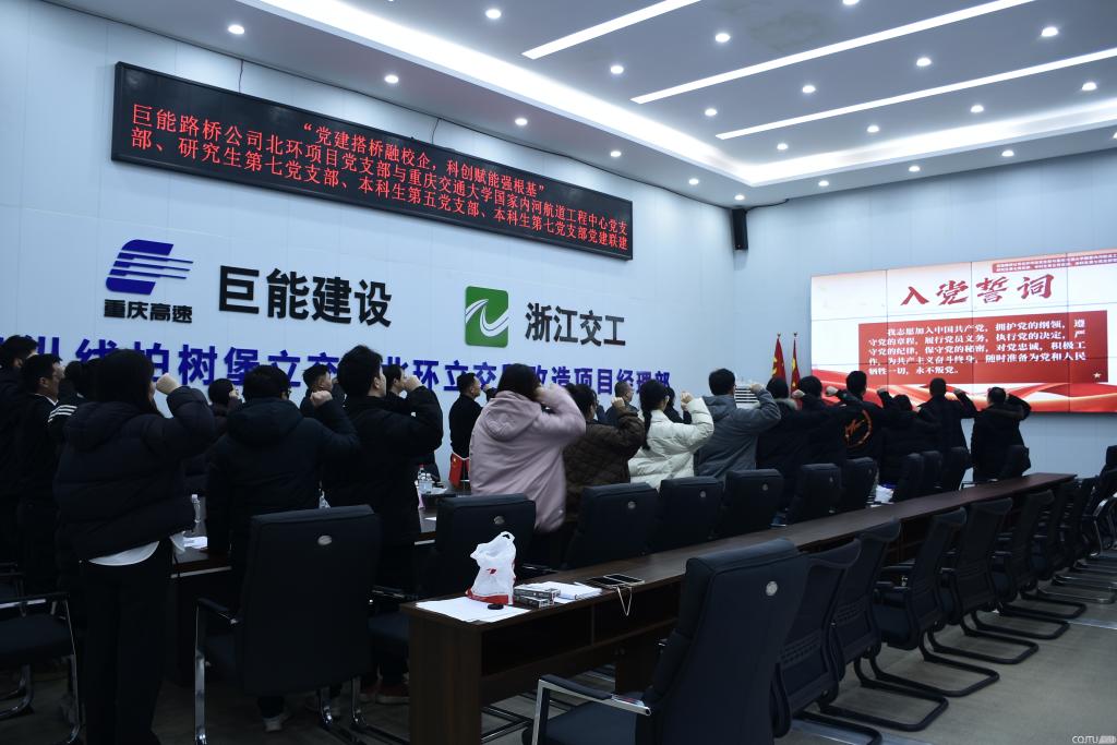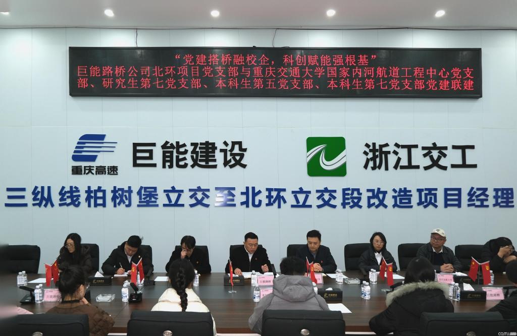 为深入学习贯彻习近平新时代中国特色社会主义思想,全面落实党的二十大精神,积极探索党建引领下产学研深度融合、校企协同创新的新路径,2025年12月26日,重庆高速巨能建设集团北环立交项目党支部(以下简称“北环项目党支部”)与重庆交通大学国家内河航道工程中心党支部(以下简称“中心党支部”)联合举办了以“党建搭桥融校企,科创赋能强根基”为主题的党建联建活动。北环项目党支部、中心党支部及重庆交通大学河海学院研究生第七党支部、本科生第五党支部、本科生第七党支部的党员代表与入党积极分子共同参与了此次联建活动。