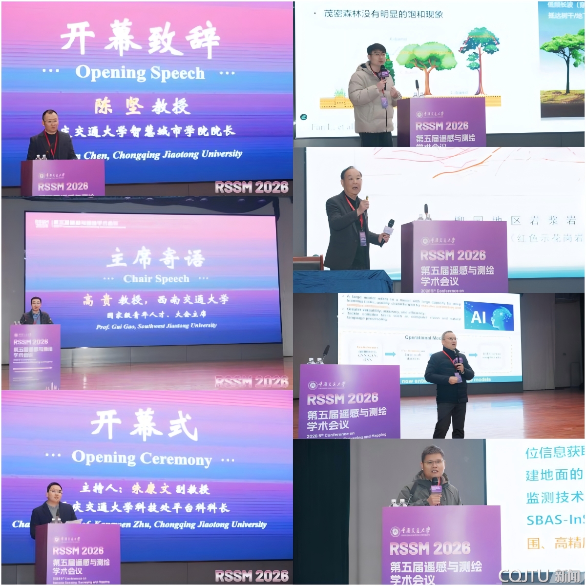 2026年1月16日至18日,第五届遥感与测绘国际学术会议(RSSM 2026)在重庆交通大学科学城校区成功召开。本次会议由重庆交通大学主办,智慧城市学院承办,并获西南交通大学、电子科技大学及河南大学协办支持。会议依托学校“明德行远、交通天下”的学科特色,结合智慧城市学院在遥感技术与交通、城市发展交叉领域的科研优势,为全球遥感测绘学者搭建了高层次的学术交流平台。大会采用线上线下融合模式,设置主会场与多个并行分会场,有效促进了国际学术共同体的深度互动与协同创新。