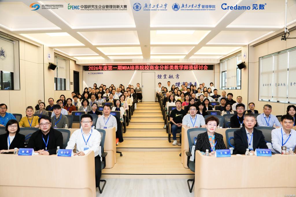 近日,由全国工商管理专业学位研究生教育指导委员会秘书处、中国研究生企业管理创新大赛组委会秘书处主办,广东工业大学管理学院承办,Credamo见数协办的“2026年度第一期MBA培养院校商业分析类教学师资研讨会”在广东工业大学管理学院隆重举行。我校MBA/MEM教育中心姚琦教授受邀参加了此次研讨会。