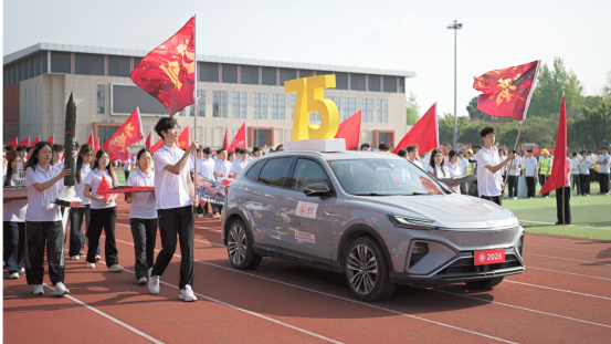 开幕式方阵步履铿锵、气势昂扬,以“科技+青春”彰显机电特色。两辆行远无人驾驶车率先领航,凸显学院在智能网联汽车领域的强劲实力;战术机甲、仿生蝴蝶等科创作品依次亮相,展现人工智能领域的探索成果与科创传承。方阵内,学子自制的火箭、国防模型气势十足,尽显家国情怀。现场翻字阵列变换出“CJU,75”专属字样,致敬母校七十五载华诞。全员口号嘹亮,秉持“机芯智造,交通强国”的信念,赓续五四精神,以科创之力践行青年使命。