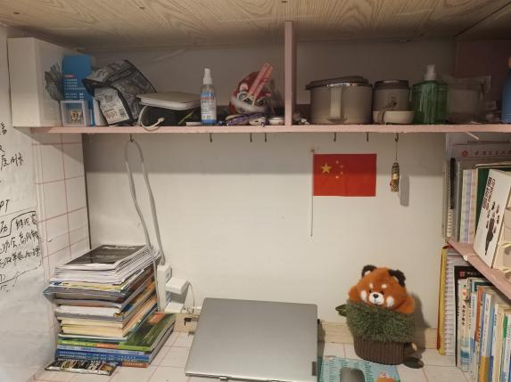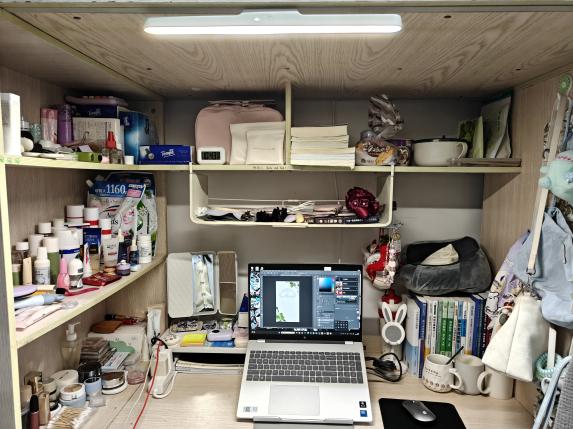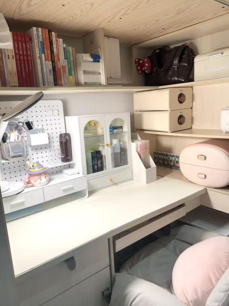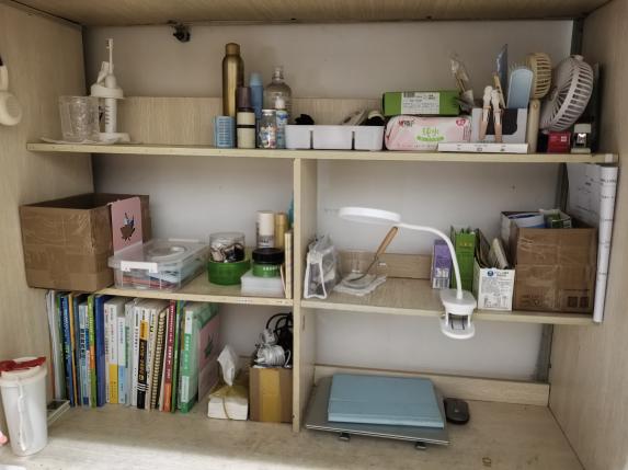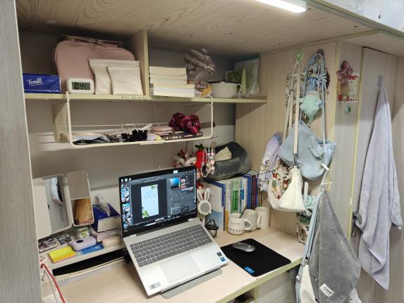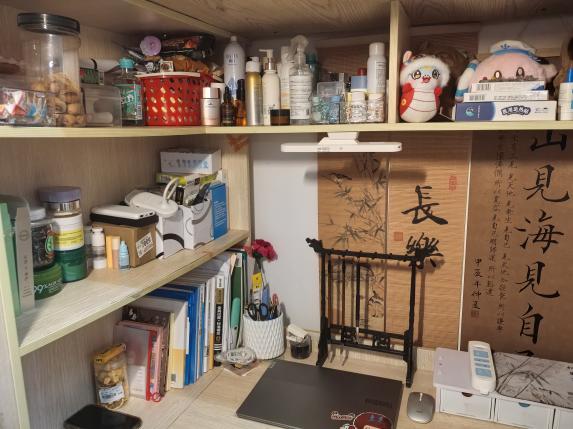 热爱生活风 有序悬挂的包包和玩偶,无不体现旅传学子对生活的热爱,摆放整齐的生活用品更展现了对待生活的积极态度。